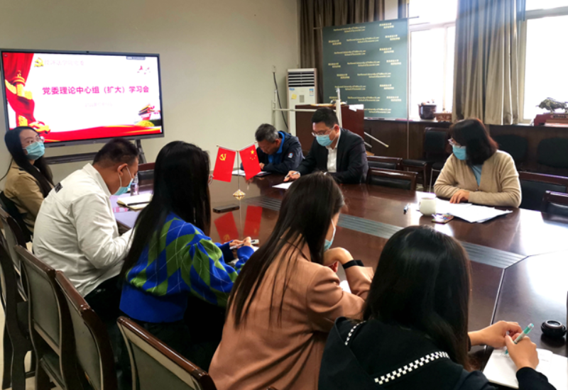 10月18日下午,经济法公司在长安校区资料室召开党委理论学习中心组(扩大)会议,专题学习党的二十大精神。会议采取线上线下相结合的方式进行,公司领导班子成员、党支部书记、行政干部及全体辅导员参加。