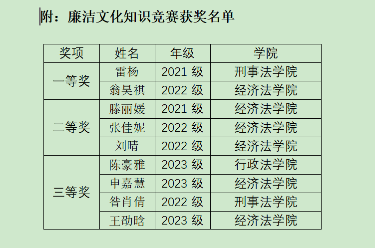 本次廉洁文化知识竞赛吸引了来自全校300余名同学的积极报名参加,达到了以赛促学、以学促廉的目的,使学生们对廉洁知识有了进一步了解,对于营造清廉正气的校园文化氛围具有积极推动作用。