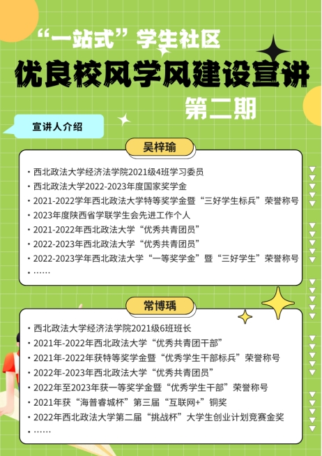 5月17日中午,本科生第二党支部采用线上线下相结合的方式继续组织开展第二期优良校风学风建设宣讲会。此次邀请2021-2022年度优秀员工干部标兵荣誉称号获得者、2021级6班常博瑀,2021-2022学年三好员工标兵荣誉称号获得者、2021级4班吴梓瑜进行宣讲。