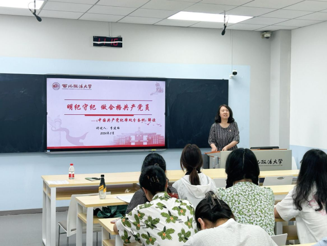张钰滢带领大家回顾了《中国共产党纪律处分条例》(以下简称“条例”)的历次修订背景,组织委员胡纪妍同志、党员代表郑思卓同志领学《条例》总则部分内容。
