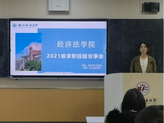会上,郗姝涵老师呼吁大家积极参与到求职就业中,调整心态,全面提升就业竞争能力,鼓励同学们在校期间平衡好学业和实习,提升综合素质,实现自身优势与行业特点的高度契合,以谋求更好的选择和发展。