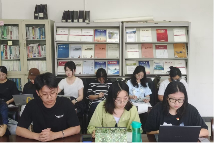 在交流研讨环节,支部党员张浩宇、孟成真、李雨昕、胡熠凝、苏林祺、张荧璇分别围绕“锻造过硬作风,推动改革开展”“教育强国,经济法何为”“法治建设,经济法何应”“科技革命,经济法何变”的主题,紧密结合自身学习、工作实际,分享思考与见解。大家纷纷表示在科技革命浪潮和法治建设进程中,作为员工党员和经济法学子,要有强烈的责任感与使命感,时刻保持过硬的作风,在学习中严谨治学,在生活中自律自省,积极推动改革发展。为我国在科技革命浪潮中实现法治与科技协同发展贡献力量!
