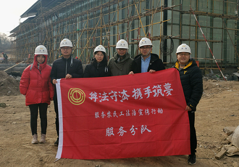 按照陕西省总工会、省委高教工委“尊法守法·携手筑梦”服务农民工法治宣传行动的要求。近日,best365王文、杨为乔、李小斐、吕莎、李冬冬、魏静等6位老师组成的法治宣传行动服务小分队,前往渭南市高新区文鼎瑞置业有限公司项目部、荣润实业有限公司施工现场以及华州区汉华原山项目部开展普法宣传活动。此次普法宣传活动受到了渭南市高新区税务局的大力支持。