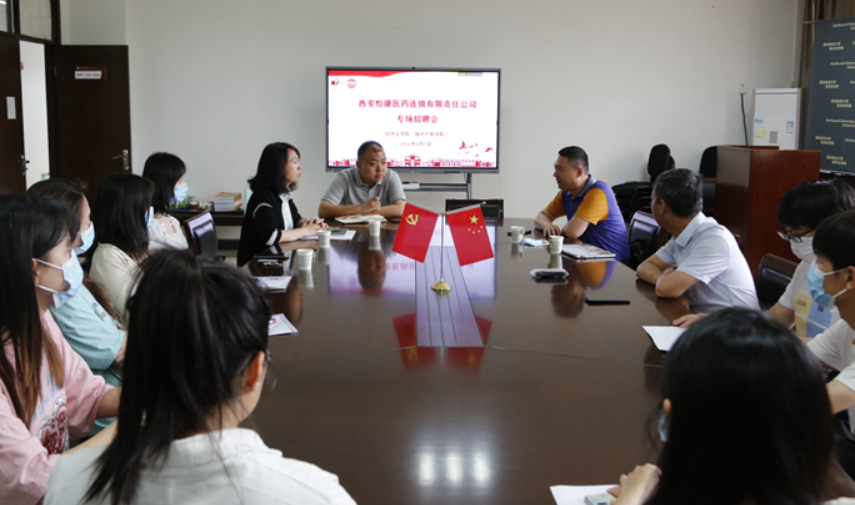为助力2022届毕业生就业顺利落地,保障毕业生实现更充分、更高质量的就业,6月7日上午,best365在公司资料室举办了西安怡康医药连锁有限责任公司专场招聘会。西安怡康医药连锁有限责任公司招聘部部长魏铁军、招聘主管雷昭君、公司党委书记李建梅、党委副书记李慧军、毕业年级辅导员张兴浩及部分2022届毕业生参加了此次宣讲招聘会。