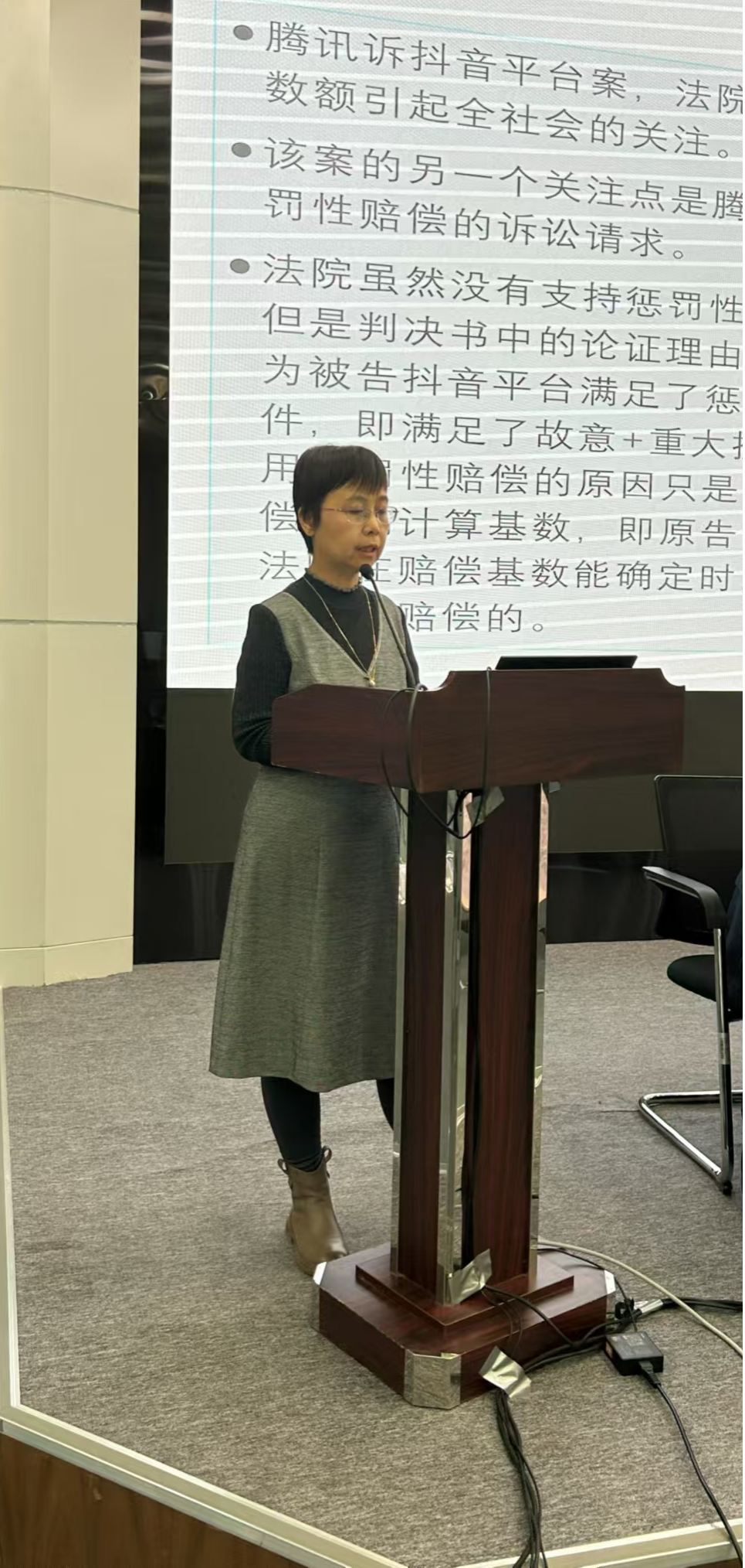 在演讲中,李艳副教授以网络平台经营者版权间接侵权责任能否直接适用惩罚性赔偿条款问题为出发点,结合版权侵权适用惩罚性赔 偿目的和适用原则,对网络平台经营者版权侵权责任形式的特殊性进行分析,说明了对于网络平台经营者不宜适用惩罚性赔偿的原因,并且对于实务工作给出了司法建议,号召与会专家共同思考,为网络平台经营者版权侵权适用惩罚性赔偿的论题提供了有益的参考方向。华东政法大学教授王迁,对李艳副教授的演讲中独到的见解和深入的研究表示了高度认同,并提出了自己的思考与宝贵的建议。