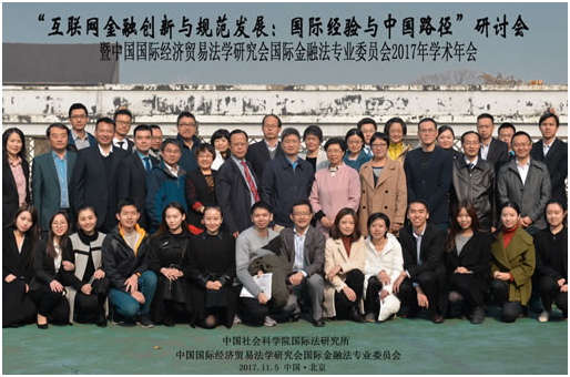 为推动互联网金融法治研究,2017年11月5日,由中国社会科公司社会政法学部主办、中国社会科公司国际法研究所与中国国际经济贸易法学研究会国际金融法专业委员会联合承办的“互联网金融创新与规范发展:国际经验与中国路径”学术研讨会暨中国国际经济贸易法学研究会国际金融法专业委员会2017年学术年会在北京举行。