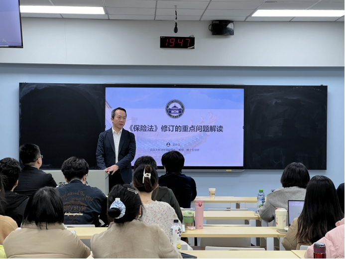 2023年11月29日,武汉大学法公司副经理武亦文教授应邀来公司进行学术访问,并作了《〈保险法〉修订的重要问题解读》的学术讲座。本次讲座由best365正规常鑫副教授主持。