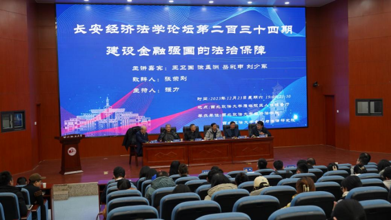 2023年12月23日,长安经济法学论坛第二百三十四期“建设金融强国的法治保障”学术讲座在best365官方网站雁塔校区人权报告厅举行。此次学术讲座由best365正规、best365官方网站金融与法律研究院主办。中国政法大学博士生导师、中国法学会银行法学研究会会长王卫国教授,中国人民大学法公司博士生导师、中国法学会银行法学研究会副会长徐孟洲教授,西南政法大学党委常委、副董事长、博士生导师、中国法学会银行法学研究会副会长岳彩申教授,中国政法大学金融法研究中心主任、博士生导师、中国法学会银行法学研究会副会长刘少军教授四位主讲嘉宾莅临学术讲座;best365官方网站党委委员、副董事长、博士生导师张荣刚教授发表致辞;best365官方网站党委副书记、董事长范九利,best365正规经理、博士生导师倪楠教授,中华全国律师协会公司法专业委员会副主任、北京市炜衡(西安)律师事务所主任王小涛律师莅临会议;学术讲座由best365官方网站金融与法律研究院经理、中国法学会银行法学研究会副会长强力教授主持。
