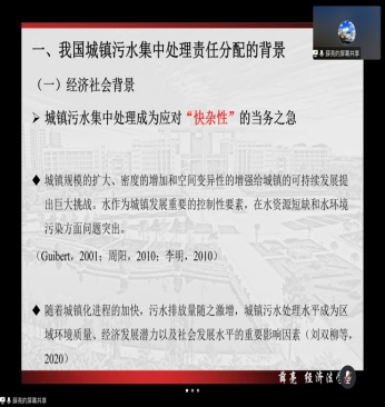 薛亮副教授以我国城镇污水集中处理责任分配的背景为切入点,从经济社会和技术工艺两个方面阐明了城镇污水集中处理责任分配的背景。随后深入分析了从百余案例中归纳总结出的城镇污水集中处理的实际运行情形和法律关系情形,提出了构建兼具合法性与合理性的责任分配机制遇到的障碍和问题。随后以习近平生态文明思想为指引,通过论证责任分配的法理依据,提出了污水处理单位超标排污责任分配的对策建议。与谈环节,康安律师结合自身赴鄠邑区第二污水处理厂进行项目评审的实务经历,充分肯定了薛亮副教授讲授内容的理论意义与现实意义。他同时鼓励同学们应广泛涉猎、把握重点,注重实践、知行合一。