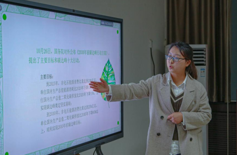 吕航、郝艳、贾泽涛、李一敏、付子涵五位同学作为导读人,分别从不同层面对本次分享的书籍——《碳达峰与碳中和100问》进行简要介绍,通过阅读、感悟、分享的方式引发同学们对双碳政策的深入思考。