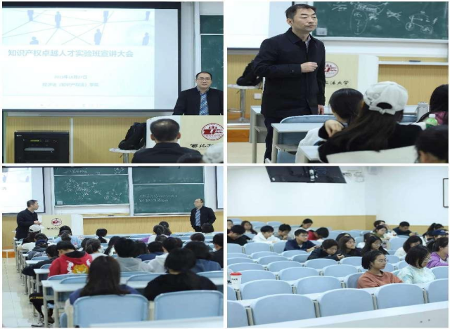 10月27日中午,知识产权卓越人才实验班宣讲会继续进行,会议由知识产权法学教研室主任杜小卫老师主持。杜小卫老师就实验班的教学方式、培养模式、遴选办法做一详细说明。与会的教研室孙栋老师结合教学实际和实务经验为同学们阐明:知识产权保护是贯彻国家知识产权战略的内在要求,也是构建知识产权强国的必然要求。培养兼具扎实知识产权法学专业知识与实务经验的复合型法律人才,有利于同学们更好的适应社会发展进步,不断提升自身综合实力。