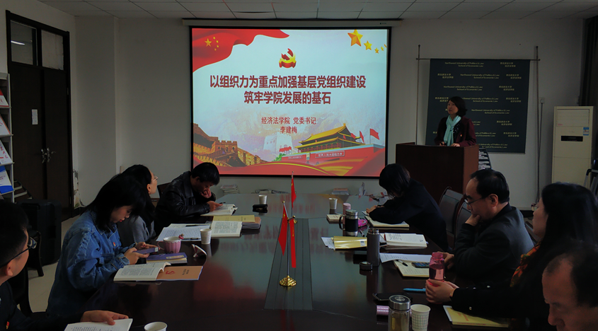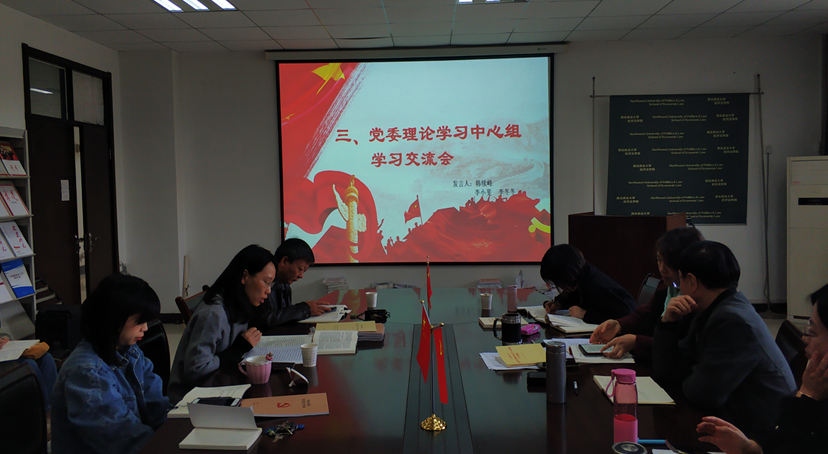 研讨交流环节,知识产权法教研室党支部书记韩续峰结合十多年的教学经历,阐述了教师政治坚定、理论清醒的立场原则与培养优秀法律人才的初心使命;本科生第三党支部书记李小斐讲述了学习西迁精神与观看《榜样4》中所感受到的大批优秀共产党员的深厚爱国情怀、崇高理想信念与艰苦奋斗精神;本科第二党支部书记李冬冬围绕专题学习内容,作了题为“依靠学习、练好本领、走向未来”的交流发言。