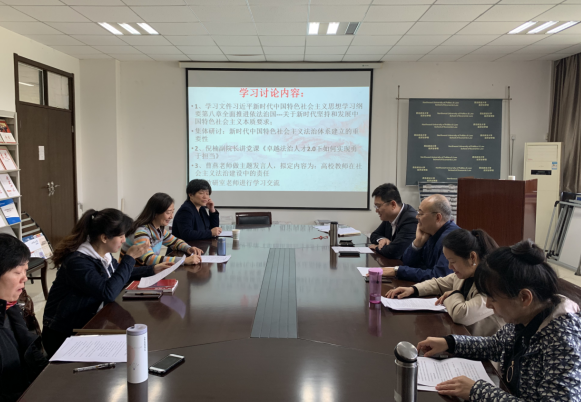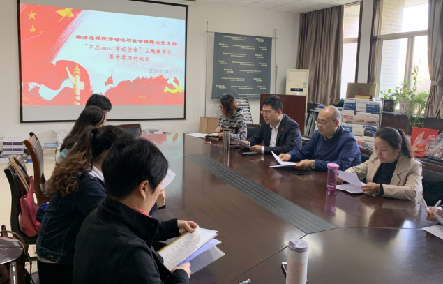 2019年10月17日下午,劳保法教研室党支部在best365南区资料室开展了主题为“不忘初心、牢记使命之全面推进依法治国”的理论学习,集中研讨“如何更好创建中国特色社会主义法治体系” ,组织开展了“亮明党员身份,牢记党员义务”主题党日活动。公司党委书记李建梅、副经理倪楠,教研室全体教师参会。