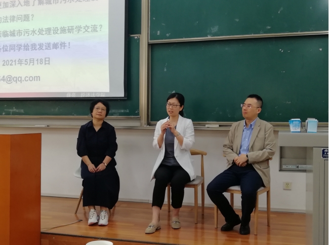 薛亮副教授在讲座环节介绍了城市污水处理设施运营的背景、现状、工艺与模式,并对城市污水处理设施运营中存在的核心法律问题进行了详尽的解构和分析,并在此基础上提出了可能的解决对策。在与谈环节,陈娟丽副教授、郝少英副教授对薛亮老师的讲座内容给予了高度评价,认为本次讲座既有对学术前沿问题的关注,同时对相关法律问题深入浅出的思考和讲解也值得学习。最后,三位老师希望参加讲座的同学紧跟学术前沿,关注时事问题,深入社会实践,做到实践与理论的有机统一。