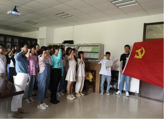 最后,全体与会党员举行了重温入党誓词的主题党日活动,面对中国共产党党旗,李扬同志领誓,所有与会人员举起右手,握紧拳头,以坚定有力的声音,表达不忘初心、牢记使命的信念和决心。