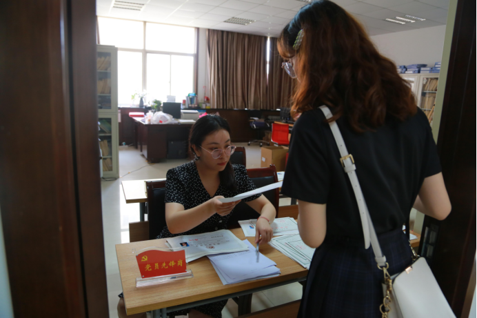 7月3日,在校员工参加全校毕业典礼及公司学位授予仪式后,最值得期待的就是领到毕业证、学位证。经过3日晚上线上安排,7月4日一大早,员工党员全部到岗,大家分领任务,有的在教务办公室负责分发毕业证与学位证,有的在资料室负责报到证发放工作,还有的在活动室接待同学们提取档案。