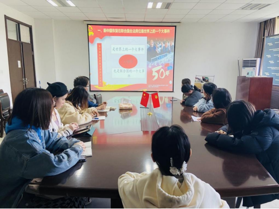 最后,围绕着习近平主席在中国恢复联合国合法席位50周年纪念会上讲话,与会党员们进行了学习交流。张钰滢谈到:“为了恢复在联合国的合法席位,新中国走过了曲折的22年,期间有无数的中国人民为之付出努力。恢复席位后的50年里,中国成为了维护世界和平与发展的中坚力量。我深深地为祖国实力不断强大感到骄傲。”俞涵也发表了自己的感悟:“从弱小到强大,从落后走向先进。历史无不在反复告诫落后就要挨打。我们青年应当牢记这段艰难的岁月,在走向中华民族伟大复兴的道路上,居安思危,发愤图强,进而从容面对这世间的风风雨雨。”(文/图:陈辰)