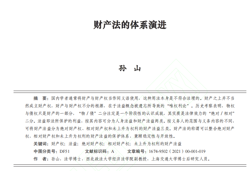 孙山:财产法的体系演进
